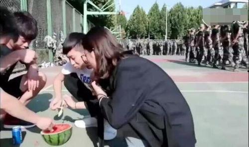 在军训的间隙,吃瓜成了新生们放松心情的最佳方式。操场上,一个巨大的西瓜被切成一块块,摆放在桌子上。新生们围坐在一起,一边品尝着美味的西瓜,一边分享着彼此的趣事。
